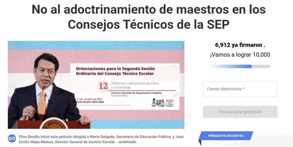 La campaña en CitizenGo sigue abierta y busca que ciudadanos de todo el país expresen su rechazo a esta política educativa antes de que se implemente oficialmente en los Consejos Técnicos y en las aulas mexicanas.