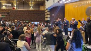 Legisladores como Sergio Gutiérrez Luna, Diana Karina Barreras y Francisco Borrego Adame fueron captados bailando y tocando instrumentos junto a la banda, interpretando clásicos como “Perfume de gardenias” y “La Boa”, imágenes que se viralizaron rápidamente.