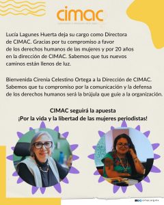 La organización Comunicación e Información de la Mujer (CIMAC) anunció un cambio en su dirección, luego de que Lucía Lagunes Huerta dejara el cargo como directora, tras 20 años al frente de la organización y una trayectoria marcada por la defensa de los derechos humanos de las mujeres y la libertad de expresión.