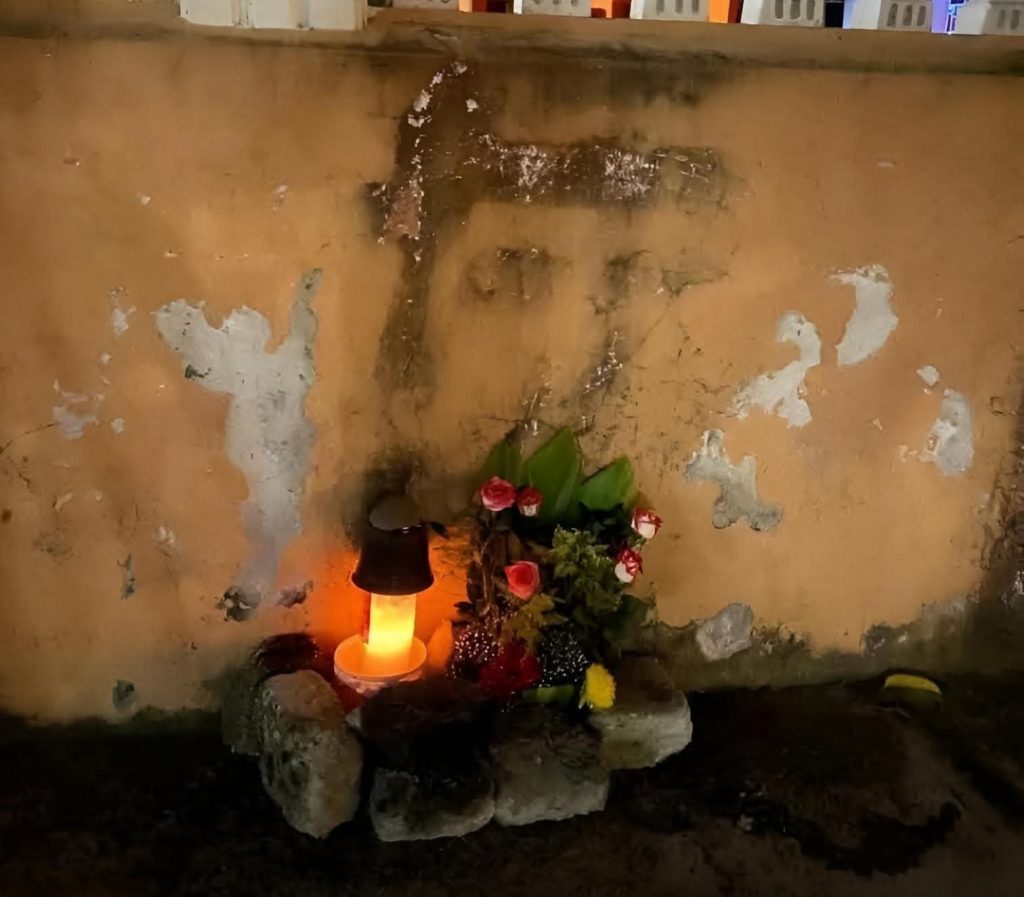 La imagen, que semeja el rostro de Cristo, apareció en una pared de la localidad y rápidamente se hizo viral en redes sociales, lo que ha provocado que feligreses acudan al sitio y coloquen veladoras y arreglos florales.