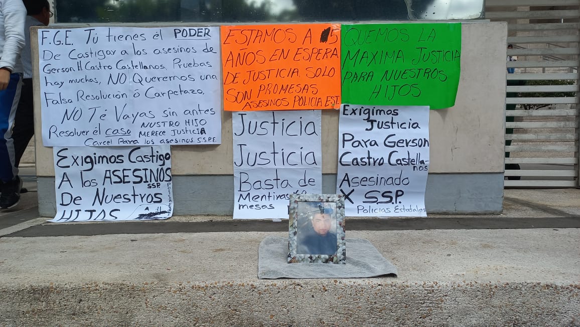 Hasta la Fiscalía General del Estado, se plantaron familiares de Gerson Hazael Castro Castellanos para exigir justicia, quien en el año 2020 fue golpeado presuntamente por elementos de la Secretaría de Seguridad Pública Estatal, donde después de varias horas falleció.