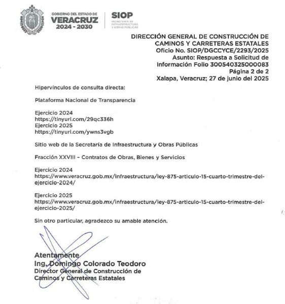 Una solicitud dirigida a la SIOP reveló que los únicos dos contratos registrados corresponden a obras adjudicadas en diciembre de 2024, aún bajo la administración de Cuitláhuac García, y sin que hayan sido concluidas a la fecha. Por decreto publicado el 4 de febrero en la Gaceta Oficial del Estado, todas las funciones de obra pública quedaron centralizadas en la SIOP, lo que hace aún más grave la parálisis en la ejecución de proyectos.
