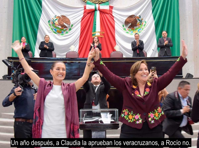 Rocío Nahle, pues, pasó de estar en el lugar 23 entre los 32 gobernadores del país en septiembre, al último lugar en octubre, y de tener 49.6 puntos a precipitarse hasta el fondo con 41.7, además, agárrese usted, o más bien debiera agarrarse ella, en la comparación de su aprobación respecto a la de la presidenta Claudia Sheinbaum, mientras que en el estado a la titular del Ejecutivo federal los veracruzanos le dan una calificación de 69.8%, Rocío, con su 41.7%, tiene un negativo de -28.1%, con otra más: está peor que cuando empezó en diciembre de 2024, cuando, de acuerdo a la medición que le lleva Mitofsky, empezó con 45.0% de visto bueno. Once meses después, en lugar de ir para adelante, va para atrás, algo que nunca antes le había ocurrido a un antecesor suyo.