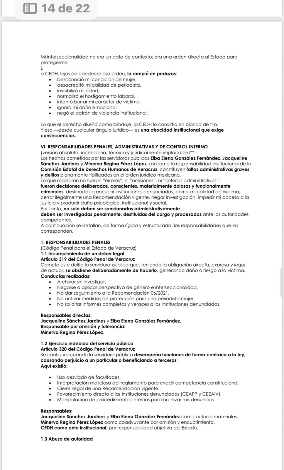 Sus actos constituyen prevaricación, abuso de autoridad, desviación de poder y violencia institucional sistemática.