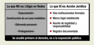 Por eso también es necesario establecer otra precisión que el poder intenta desvirtuar: esto no es litigio en redes ni construcción de protagonismo mediático. Aquí hay acciones jurídicas en curso, con rutas claramente definidas. La vía penal ha sido activada para que la autoridad investigue conductas que no pueden quedar impunes, y la vía laboral está en marcha para controvertir actos administrativos que vulneran derechos adquiridos. Se acudió primero al derecho, no a la exposición. Y eso cambia completamente el sentido de lo que está ocurriendo.