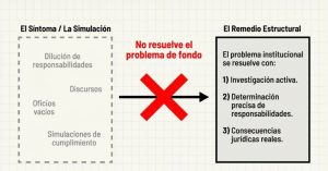 La diferencia, sin embargo, es clara y no admite matices. Una cosa es aparentar cumplimiento y otra muy distinta es ejercerlo. El remedio estructural no está en llenar expedientes, sino en investigar, determinar responsabilidades y generar consecuencias jurídicas reales. Todo lo demás es encubrimiento institucional disfrazado de procedimiento.
