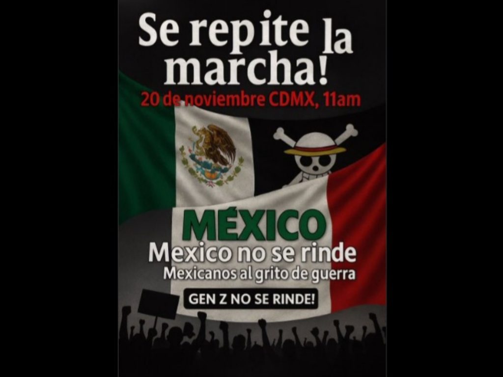 La organización Generación Z México lanzó un nuevo llamado a movilización nacional para el próximo 20 de noviembre a las 11:00 horas en la Ciudad de México, replicando los mismos puntos de inicio y final utilizados durante la protesta del 15 de noviembre.