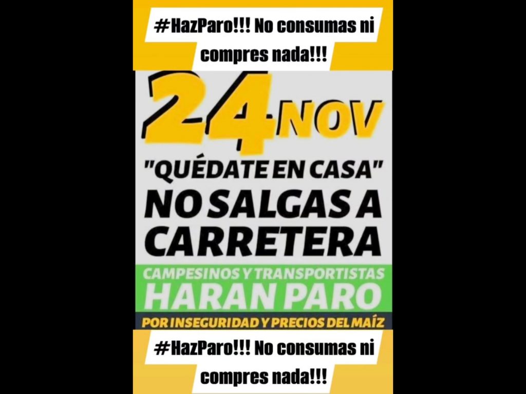 Este 24 de noviembre de 2025, integrantes de la Asociación Nacional de Transportistas (ANTAC), el Frente Nacional para el Rescate del Campo Mexicano (FNRCM) y el Movimiento Agrícola Campesino (MAC) realizaron un mega paro nacional, acompañados de un llamado a la población a no consumir ni comprar nada bajo la consigna #HazParo.