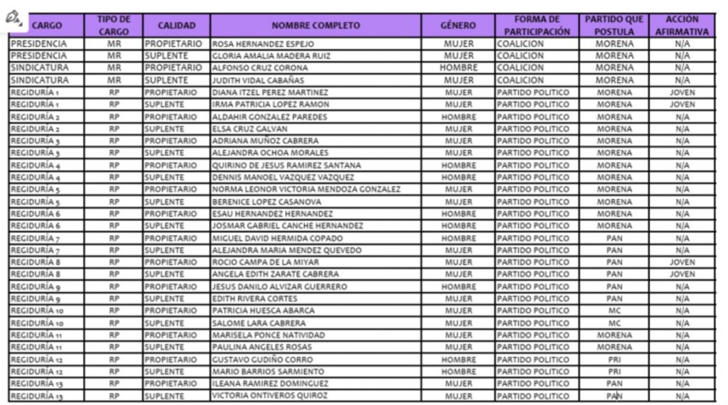 • Regiduría 1: Diana Itzel Pérez Martínez – Morena