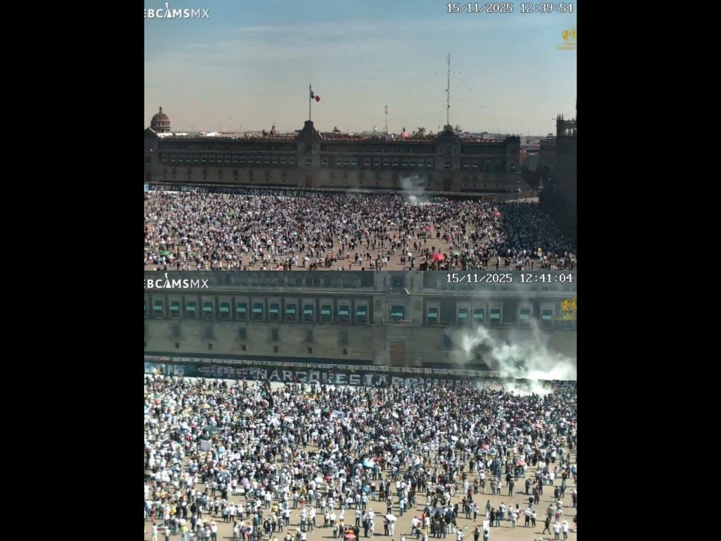 A solo una hora de haber iniciado la marcha, el Zócalo capitalino registra una afluencia creciente de manifestantes que siguen arribando desde distintos puntos del Centro Histórico.