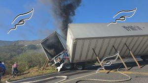 De acuerdo con los primeros reportes, el siniestro involucró dos cabinas con cajas secas, una de las cuales quedó volcada sobre la cinta asfáltica. El fuerte impacto originó el incendio de la unidad, lo que obligó a implementar de inmediato labores de auxilio y control del fuego para evitar mayores riesgos.