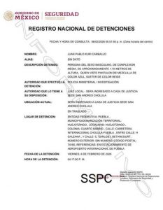 El empresario y exdirigente estatal del Partido Verde Ecologista de México, Juan Pablo Kuri Carballo, fue detenido por autoridades ministeriales en las inmediaciones del Aeropuerto Internacional Hermanos Serdán, en el municipio de Huejotzingo, Puebla.