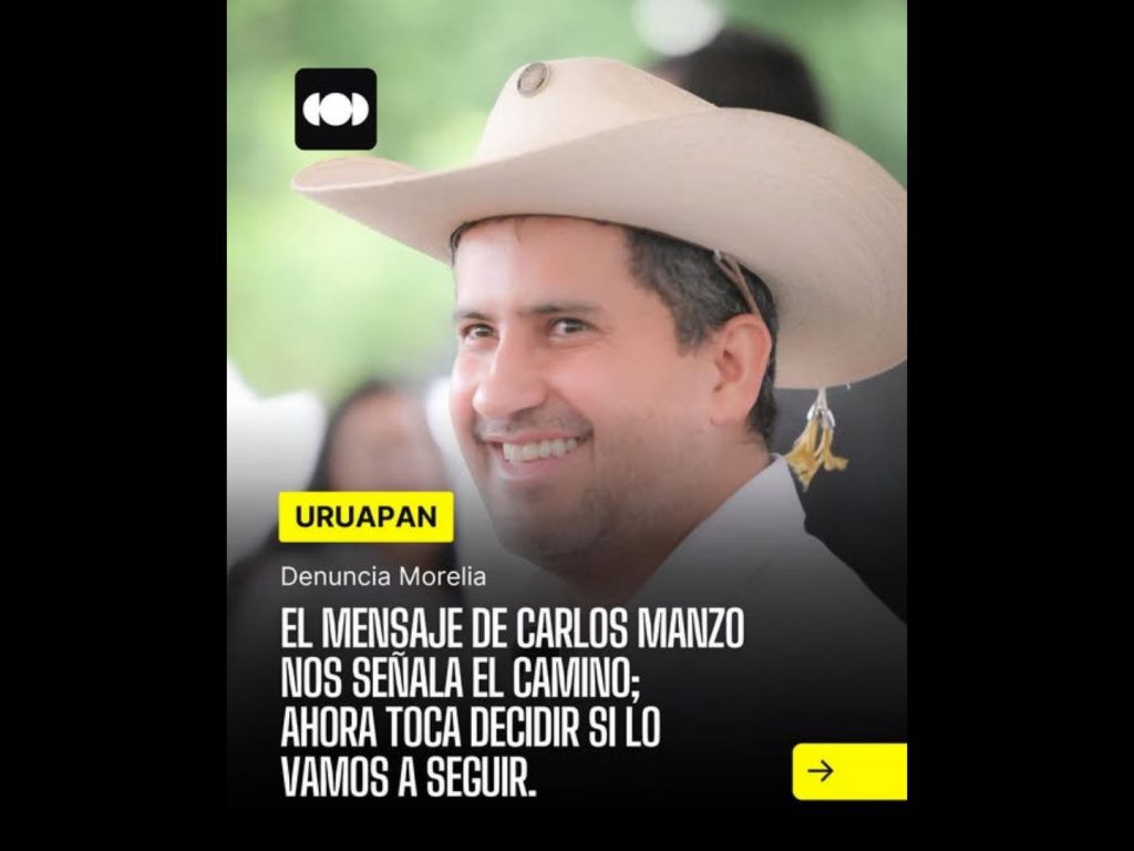 En el mensaje, se subraya que Carlos Manzo no fue perfecto, pero sí firme con sus convicciones, y que su lucha nació de “la necesidad de que Uruapan dejara de vivir con miedo y de que México entendiera que la violencia no se combate con discursos, sino con decisiones”.