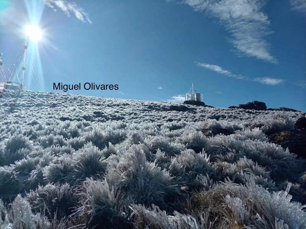 La mañana de este martes se observó cencellada en el Cofre de Perote, fenómeno ocasionado por la congelación de la humedad en el ambiente.