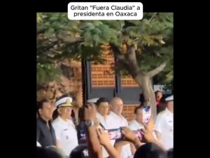 Entre la multitud reunida en la estación de Juchitán, se escucharon consignas como “¡Fuera Claudia, fuera Claudia!”, lema utilizado en las movilizaciones del 15 y 20 de noviembre contra la delincuencia. Aunque también hubo asistentes que expresaron apoyo a la mandataria y al Gobernador Salomón Jara.