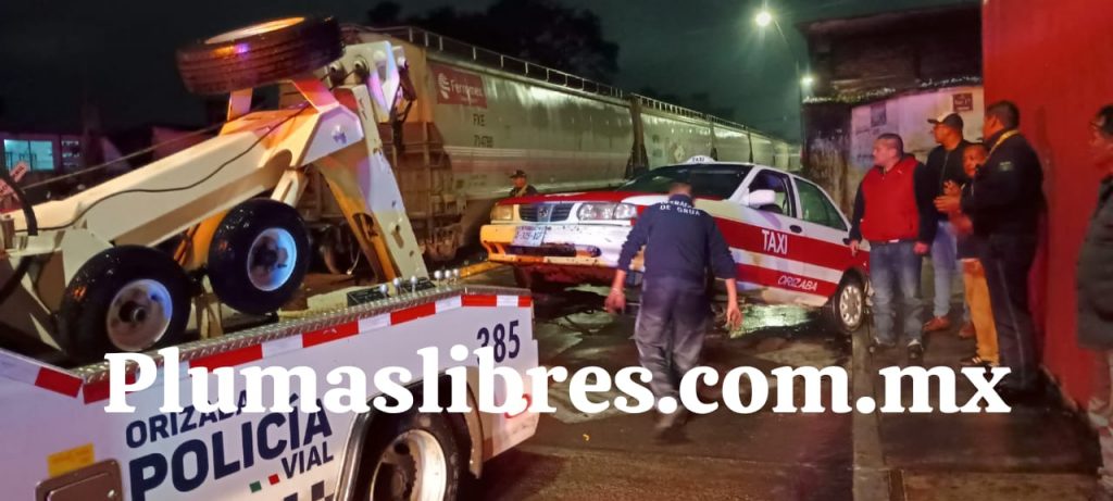 La noche de este viernes, un taxi con número económico 343 del municipio de Orizaba fue impactado por el ferrocarril cuando intentaba cruzar las vías ubicadas en la intersección de Sur 17 y Vías, lo que generó una amplia movilización de cuerpos de auxilio y autoridades viales.