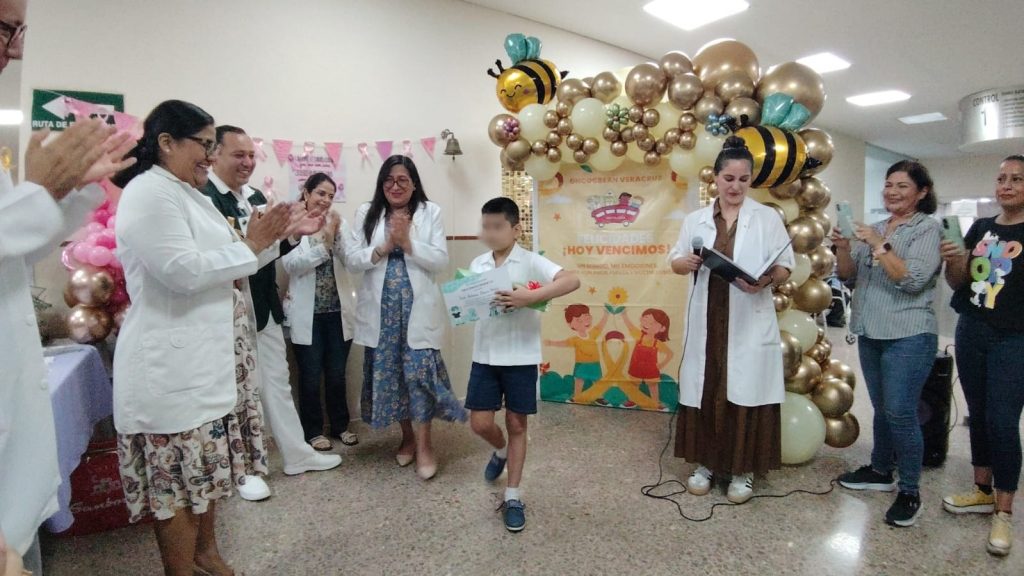 La Unidad Médica de Alta Especialidad (UMAE) del Hospital de Especialidades No. 14 del Centro Médico Nacional (CMN) “Adolfo Ruiz Cortines” del Instituto Mexicano del Seguro Social (IMSS) en Veracruz Norte festejó la remisión de 7 pacientes entre ellos 6 menores de edad que realizaron el “Toque de Campana de la Victoria”.