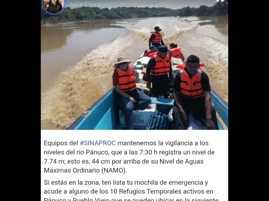 La Secretaría de Protección Civil del Estado de Veracruz informó que el río Pánuco se mantiene por arriba de su nivel máximo, por lo que pidió a la población cercana evacuar de manera preventiva.