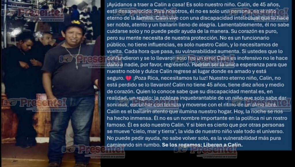 Los allegados señalaron que la desaparición ha generado profunda angustia y temor por su integridad, debido a su condición de vulnerabilidad emocional e intelectual. “Si alguien lo confundió o se lo llevó sin saber quién es, pedimos que lo regresen. Calin no hace daño a nadie, su alma es pura”, afirmaron.