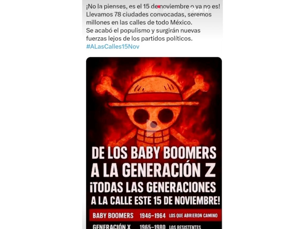 El cartel de la convocatoria llama a que todas las generaciones, desde los Baby Boomers hasta la Generación Z, participen en la marcha. La convocatoria se presenta con un mensaje unificado: salir a las calles para exigir cambios y marcar distancia de las estructuras partidistas tradicionales.