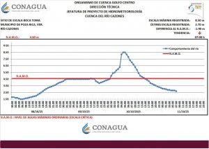 De acuerdo con el Organismo de Cuenca Golfo Centro, el nivel máximo de aguas ordinarias (NAMO) del río —su límite de seguridad— es de 4.60 metros. Sin embargo, durante la madrugada del 10 de octubre, el nivel alcanzó los 8.50 metros, casi el doble del valor permitido, en apenas dos horas y media. Esta crecida repentina provocó el desbordamiento que inundó colonias enteras, destruyó viviendas y dejó pérdidas humanas y materiales incuantificables.