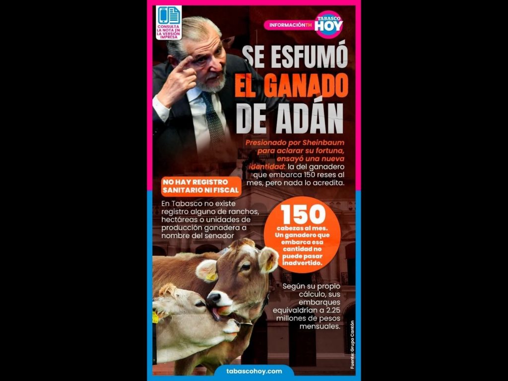 Sin embargo, el medio Tabasco Hoy publicó que no existe registro alguno de ranchos, hectáreas o unidades de producción ganadera a nombre del senador en la entidad, lo que pone en duda la veracidad de su nueva fuente de ingresos.
