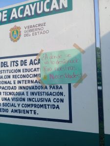 Estudiantes del Instituto Tecnológico Superior de Acayucan (ITSA) se manifestaron la mañana de este martes colocando pancartas en la entrada principal de la institución para denunciar las condiciones deplorables en que se encuentra este centro educativo y la presunta represión ejercida por su director, Javier Domínguez Aguilar.