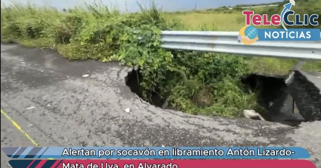 A pocos días de que se registrara un socavón en el bulevar de la Riviera Veracruzana, se formó otro socavón en el puente del libramiento Antón Lizardo-Mata de Uva, donde un deslizamiento de tierra fracturó la carpeta asfáltica.