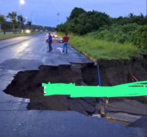 Un socavón de aproximadamente dos metros de diámetro se formó en el bulevar Riviera Veracruzana, a la altura del carril que conduce hacia Antón Lizardo, como consecuencia de las lluvias registradas en las últimas horas en el municipio de Alvarado.