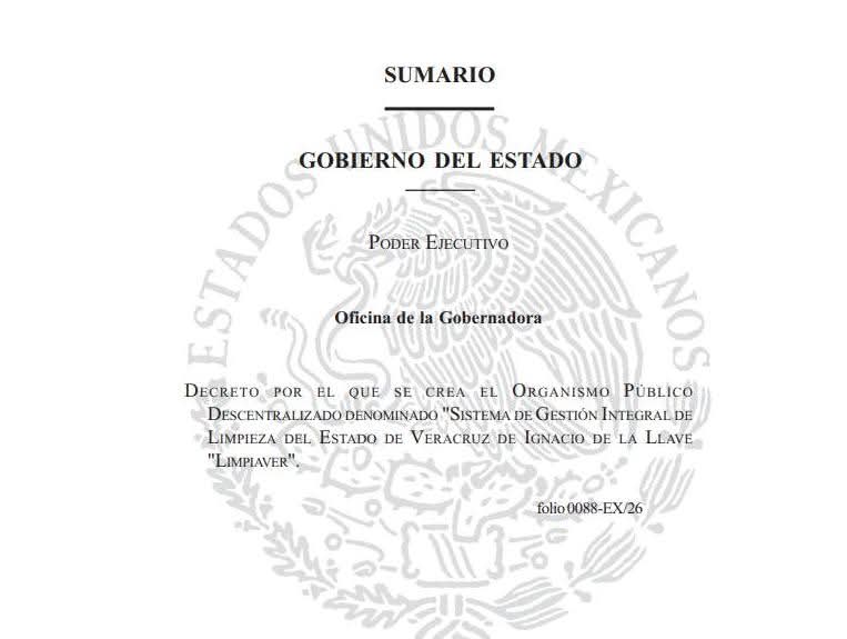 Una nueva empresa «Sistema de Gestión Integral de Limpieza del Estado de Veracruz de Ignacio de la Llave (LIMPIAVER). / Redacción Xalapa