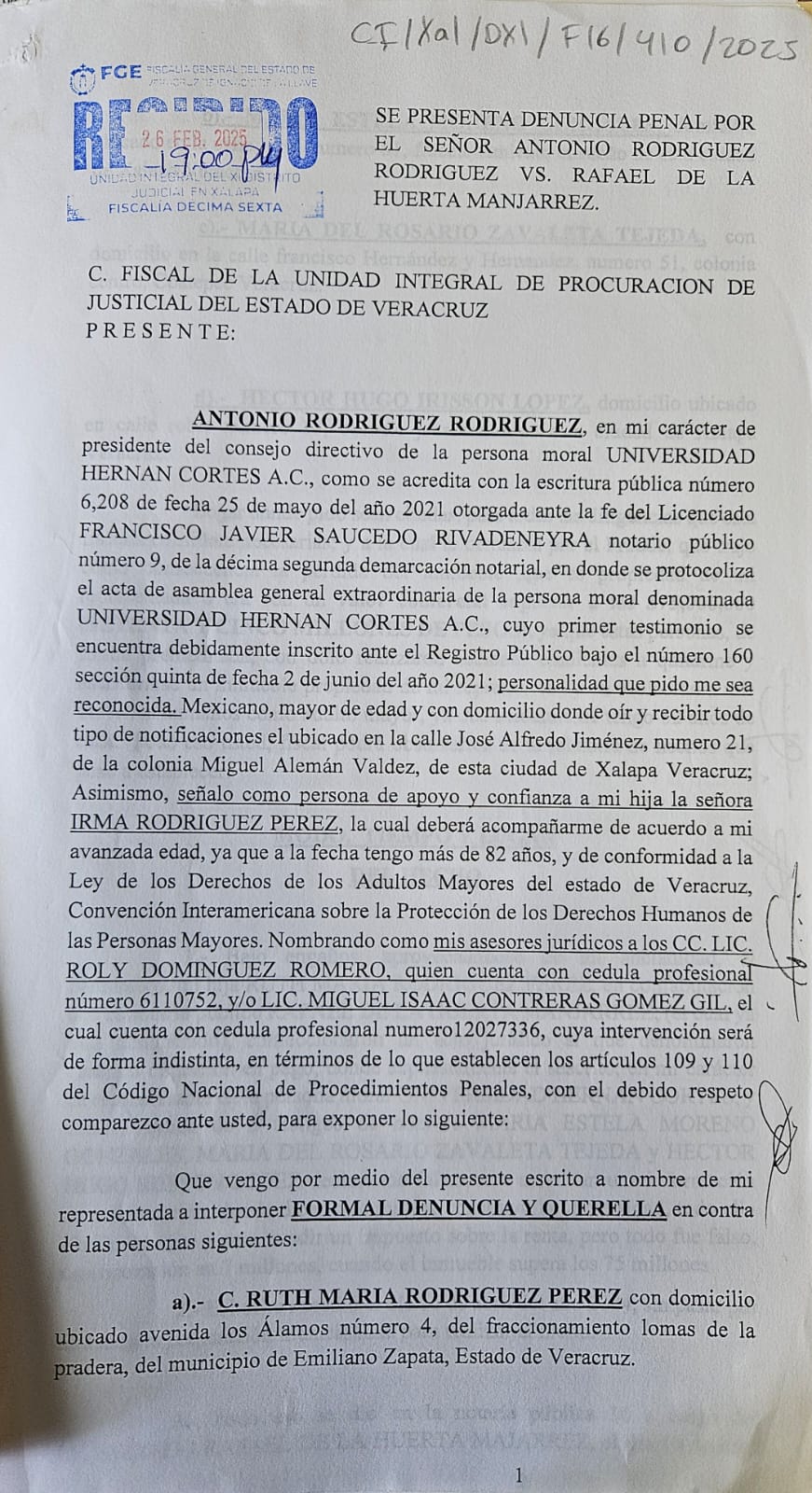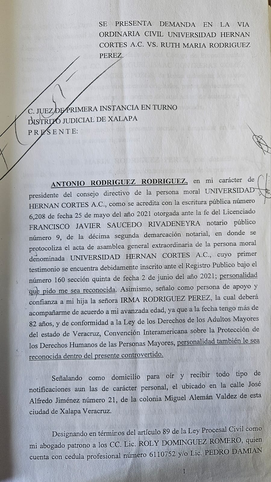 Un drama familiar, vive el señor Antonio Rodríguez, de 84 años de edad, quién acusa a su hija Ruth María Rodríguez Pérez de haberlo despojado bajo engaños del inmueble de la Universidad privada «Hernán Cortés» de esta capital.