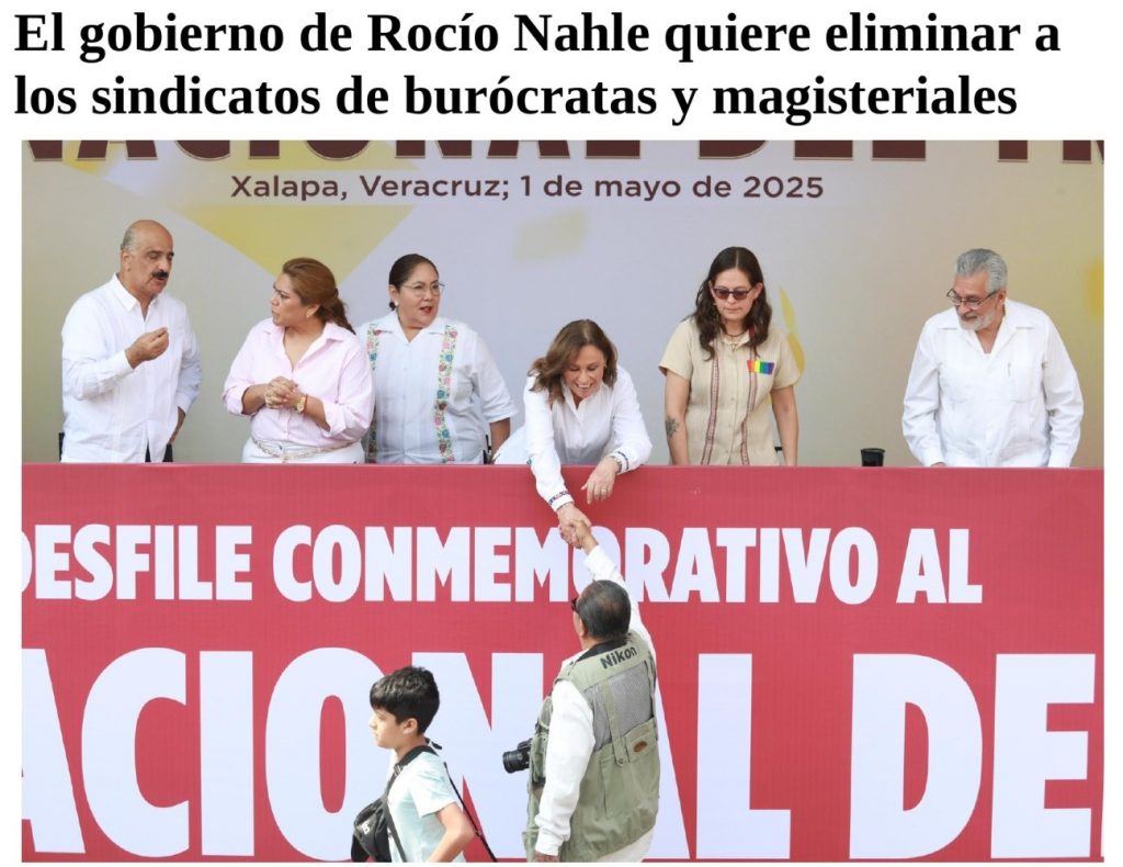 A través de la columna Místicos y Terrenales, el periodista Marco Antonio Aguirre Rodríguez reveló que el gobierno de Rocío Nahle impulsa un plan para desaparecer a los sindicatos minoritarios del Poder Ejecutivo, ayuntamientos, Poder Judicial, Fiscalía y sector educativo, con la intención de instaurar un modelo de sindicalismo único y controlado políticamente.