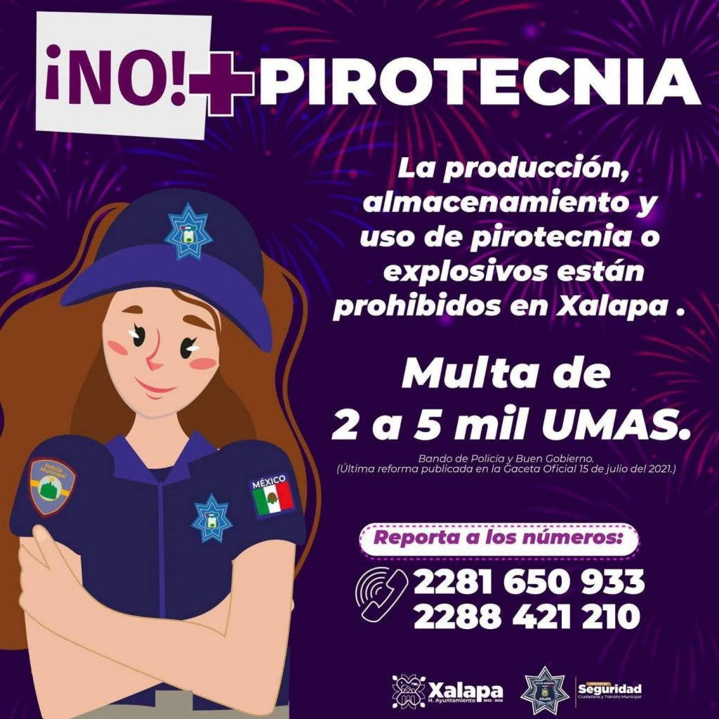 En Xalapa, está prohibida el uso de la pirotecnia, las multas van de los 481 pesos y hasta los 96 mil 220 pesos, el reglamento señala que solo en casos excepcionales se podrá utilizar con permiso de Protección Civil municipal.