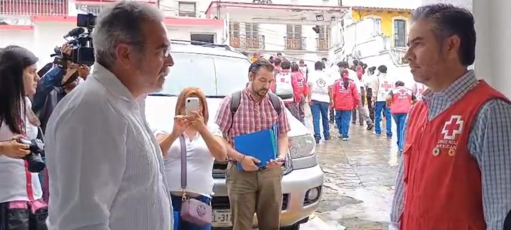 El rector Martín Aguilar Sánchez acudió este martes a las instalaciones de la Cruz Roja para entregar víveres que serán donados a familias afectadas por las lluvias en la zona norte del estado.