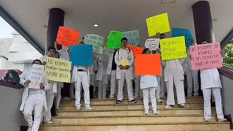 Citlali Ríos, una de las manifestantes, señaló que desde hace aproximadamente seis meses, los residentes carecen de guantes, cubrebocas, batas quirúrgicas, así como de medicamentos del cuadro básico, material de curación y equipo para suturas, entre otros elementos esenciales para su formación y la atención segura de los pacientes.